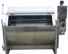 成衣染色机特点: 1)本机适用于羊毛,涤纶,尼龙,人造丝等针织品的染整处理。 2)染液接触之缸体均采用及具度抗腐蚀的不锈钢板制造,保证不污染织物,经久耐用。 3)染缸内壁及划桨轮均有表面抛光处理,保织物不受损害。 4)按不同织物的染整要求及载重,可通过无段变速装置来任意高速划桨转动速度。 5)染整全部操作过程由起动至停止均由电箱内按钮操作,其染整时间可由电箱内时间自动控制,染整时间可根据不同需求预先调节好。 6)通过电箱内的正反转自动控制器,使染缸内的划桨轮倒顺旋转,液体兴织物正反流动变化,从而提高染整效果。 7)根据不同的染整工序要求,在缸底安装直接及间接蒸气管可达到加温,保温的作用。